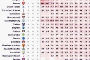 體育資訊9月29日訊 Opta更新了超級計算機預測的英超各隊奪冠概率,利物浦46.5%仍居首位,阿森納逆轉紐卡之后升至34.6%,排名次席。
