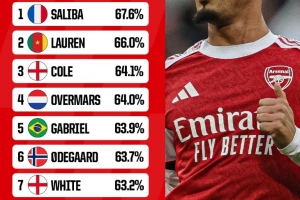 體育資訊9月30日訊 薩利巴與阿森納續(xù)約在即,OPTA也盤點了阿森納隊史球員在英超勝率榜(至少100次出場),其中薩利巴居首,具體如下: