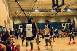 當(dāng)時是Veritas Academy的進攻回合,張博源和對手(白隊13號球員)對位,兩人胳膊糾纏在一起,隨后發(fā)生口角,還升級為肢體沖突,張博源被沖上來的隊友護住,他的隊友們將對手推開,更多人加入沖突,導(dǎo)致比賽停止,教練也參與了進來。