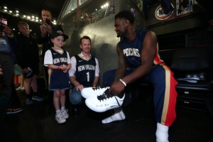 體育資訊10月6日訊 在澳大利亞進行季前賽的錫安,在比賽中將自己親穿球鞋簽名送給了一位小球迷Theodore。Theodore剛剛戰勝了癌癥。