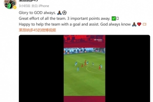賽后,萊昂納多更新社媒慶祝,他同時配文:榮耀歸于上帝,全隊付出了巨大努力,客場拿到重要的3分,很高興用進球和助攻幫助球隊,上帝總是知道。