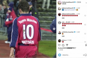 拜仁名宿馬特烏斯更新社媒動態(tài),曬出自己身穿拜仁10號球衣的照片,并@穆西亞拉,表達對后輩的期待。