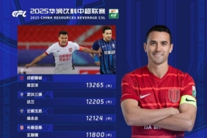 體育資訊7月1日訊 中超官方公布第16輪跑動距離榜,蓉城球員周定洋再度登頂,他本賽季已經7次領跑當輪跑動榜。