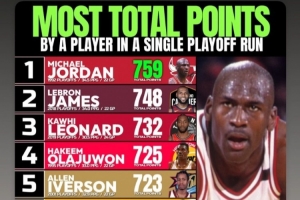 1、喬丹 1992年季后賽共得759分 場均34.5分(22場)