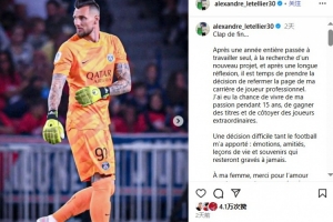 體育資訊10月15日訊 34歲前巴黎圣日耳曼門將萊特利爾在社媒宣布,結束15年的職業生涯。
