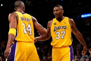 2010年6月17日,湖人和凱爾特人在總決賽中迎來生死戰。比賽到第四節雙方殺得難解難分,還剩1分鐘時科比傳球給阿泰斯特,后者投進了鎖定勝局的三分,幫助球隊最終捧起總冠軍獎杯。是役,科比拿下23分,阿泰斯特貢獻全隊第二高的20分。綠軍雖然首發五虎全部得分上雙,但還是遺憾落敗。