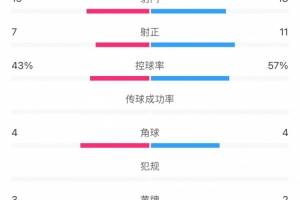 控球率:43%-57%