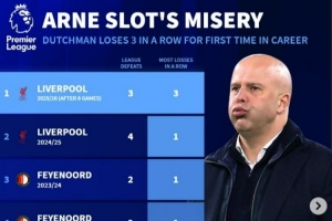 體育資訊10月20日訊 在本輪英超,利物浦1-2不敵曼聯(lián)。這也是斯洛特執(zhí)教生涯首次遭遇聯(lián)賽三連敗,以下為他執(zhí)教具體情況: