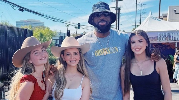 湖人球員詹姆斯、東契奇、文森特、克內克特、里夫斯、斯瑪特等人悉數亮相,詹姆斯與三大年輕美女合影,并俏皮地吐了舌頭。