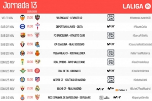 體育資訊10月20日訊 西甲官方公布第13輪比賽時間,11月22日23:15巴薩對陣畢巴,皇馬24日4點(diǎn)出戰(zhàn)。