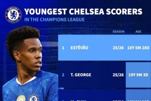 體育資訊10月23日訊 德國轉(zhuǎn)會市場列出了切爾西隊史歐冠最年輕進球者排名,埃斯特旺居首。