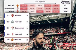 根據Opta的賽程難度評級,曼聯是本賽季英超開局最艱難的球隊……