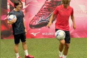 菲利克斯和日本過人選手奧平卓也比拼顛球,兩人在鏡頭前秀技。
