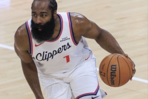 本場比賽,快船先發為:哈登、比爾、萊昂納德、德里克-瓊斯、祖巴茨。