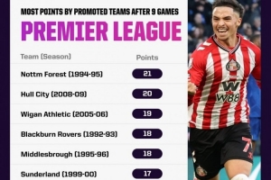 英超歷史升班馬前9輪戰績:
