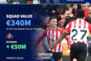 體育資訊10月27日訊 《轉會市場》在近日已經更新了五大聯賽球隊身價,他們也據此列出了各大聯賽最新身價更新后的身價(歐元)上漲和下降最多的球隊。