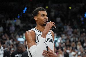 上半場比賽,文班亞馬出戰15分30秒,投籃2中2,罰球6中6,得到10分8籃板2助攻2搶斷,正負值+29。
