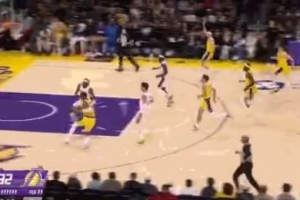 GIF-八村塁反擊被切球,裁判吹出界;湖人挑戰成功,阿夫迪亞犯規