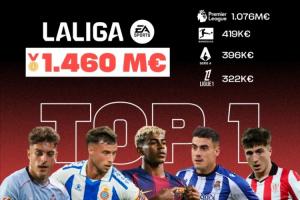 西甲是歐洲青訓球員總市場價值最高的聯(lián)賽,達14.6億歐元,遠超英超(10.7億歐元)、德甲(9.6億歐元)、意甲(8.9億歐元)及法甲(7.6億歐元)。在2025年夏季轉(zhuǎn)會窗口中,西班牙俱樂部通過本土青訓球員轉(zhuǎn)會創(chuàng)下2.89億歐元的收入紀錄,創(chuàng)歷史新高,印證了其青訓戰(zhàn)略的成功。