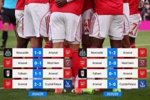 然而上賽季在相同的主客場對陣情況下,阿森納面對這4個對手2平2負,只拿到2分。對比下來,本賽季的阿森納相當于在這4輪賽程里比上賽季多拿了10分。
