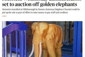 體育資訊10月28日訊 據《泰晤士報》報道,進入托管狀態的謝周三俱樂部正采取多種措施籌集資金,托管人準備拍賣掉前主席錢西里安放在希爾斯堡球場的兩尊標志性金象雕像。這些雕像因擔心被球迷破壞或盜竊已被移至室內。