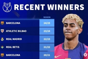德轉列近10年國王杯冠軍: