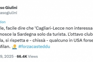 朱利尼寫道:“親愛的卡迪納萊,當你對(卡利亞里主場所在地)撒丁島的了解僅限于游客視角時,說‘沒人關心卡利亞里對陣萊切的比賽’會很容易。作為意大利球迷數量排名第八的俱樂部,卡利亞里既有觀眾關注,也備受尊重。而且誰知道呢,在美國,或許支持卡利亞里的人比支持米蘭的還多(注:在美國有很多來自撒丁島移民的后裔)。”