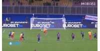 卡馬達主罰點球射門被瓦尼亞神勇撲出。