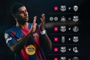 本賽季拉什福德狀態復蘇,在出戰的13場比賽中貢獻5球6助攻。今日巴薩官推曬出了拉什福德本賽季的進球和助攻分布,具體如下: