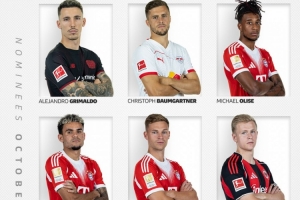 體育資訊10月29日訊 今日,德甲官方公布了10月份聯(lián)賽最佳球員的6名候選人,奧利塞領(lǐng)銜拜仁3將在列。