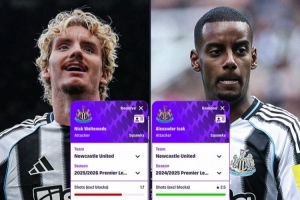 體育資訊10月30日訊 紐卡新援沃爾特馬德在本賽季加盟后表現出色,在英超聯賽6場打進4球。數據機構squakwa也對比他本賽季和伊薩克上賽季的英超場均關鍵數據,兩人進球持平,而除了射門和傳球數之外,沃爾特馬德其他數據都更強: