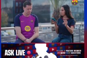 體育資訊10月30日訊 巴薩門將什琴斯尼今日參與了球隊的直播節目,節目中他回答了來自球迷的實時提問,還進行了一個快問快答挑戰。