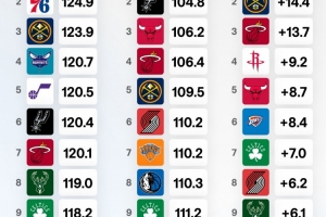 Net Rating(凈效率):是進(jìn)攻效率減去防守效率,即球隊(duì)每100個(gè)回合凈勝對(duì)手的分?jǐn)?shù)。這是最能反映一支球隊(duì)整體實(shí)力的指標(biāo)。