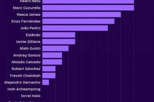 體育資訊10月31日訊 數據機構squakwa統計了本賽季切爾西隊內的英超創造機會情況,庫庫雷利亞和內托并列居首。