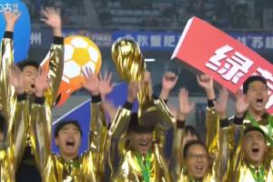 賽后頒獎環節,泰州隊全隊身著金色戰袍,捧起首屆蘇超冠軍獎杯!