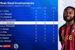 體育資訊11月2日訊 天空體育盤點了本賽季歐洲主流聯賽球員參與進球榜(進球+助攻),以下為具體榜單(只統計聯賽):