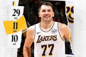 賽后湖人發布東契奇三雙數據海報,并寫道:生涯第83次三雙。