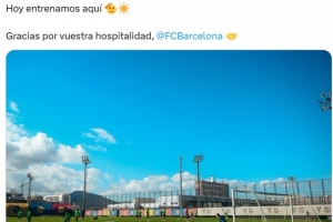 體育資訊11月3日訊 西甲埃爾切官推曬出一張球隊(duì)借用巴薩訓(xùn)練基地訓(xùn)練的照片,配文寫道:“今天我們?cè)谶@里訓(xùn)練,感謝巴薩俱樂(lè)部的慷慨??”